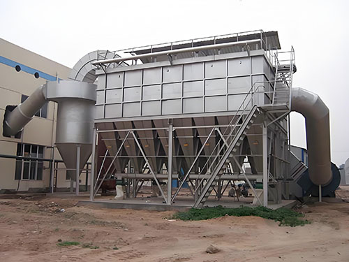 The dusty gas enters through the powder inlet and passes through the ash hopper, causing some large particles of dust in the gas to be separated by inertial force and directly fall into the ash hopper. The dusty gas enters the dust removal bag filtration area of the middle box after passing through the ash hopper. The gas passes through the filter bag, and the dust is trapped on the outer surface of the filter bag. The purified gas enters the upper box through the filter bag and is discharged through the air outlet.